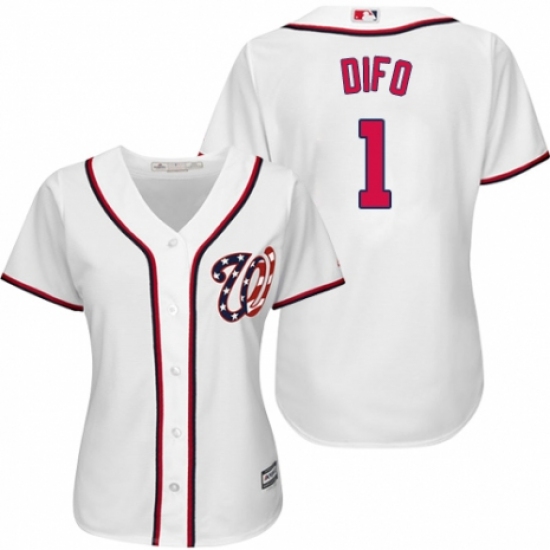 Women's Majestic Washington Nationals #1 Wilmer Difo Replica White Home Cool Base MLB Jersey