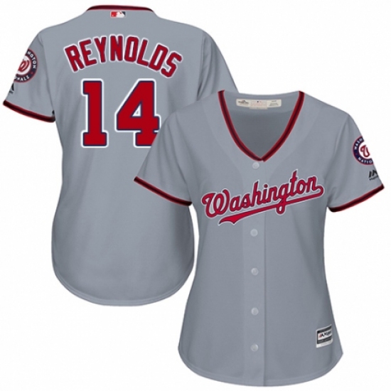 Women's Majestic Washington Nationals #14 Mark Reynolds Replica Grey Road Cool Base MLB Jersey