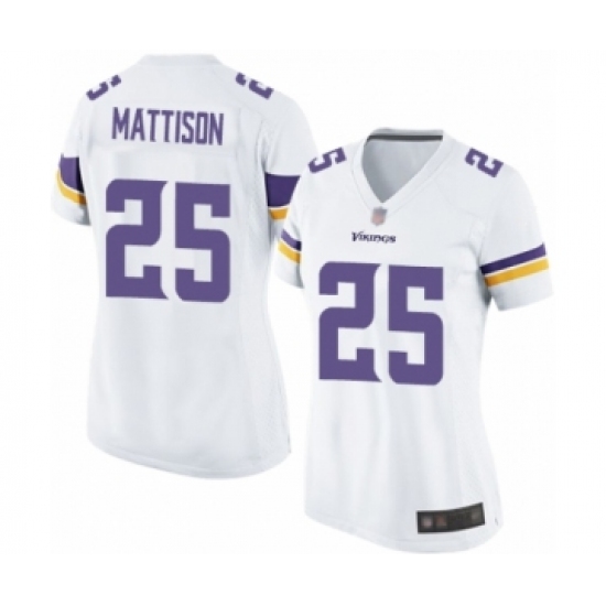 >Women's Minnesota Vikings #25 Alexander Mattison Game White Football Jersey