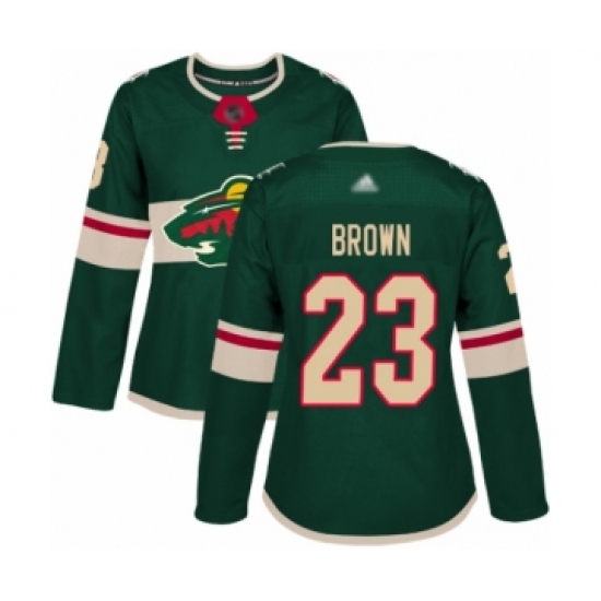 Women's Minnesota Wild #23 J.T. Brown Authentic Green Home Hockey Jersey