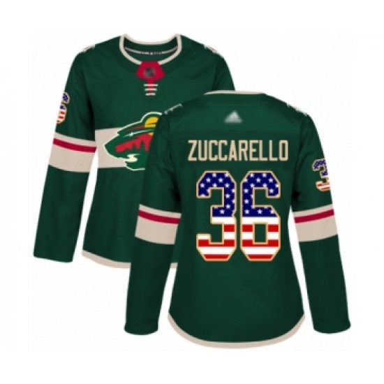 Women's Minnesota Wild #36 Mats Zuccarello Authentic Green USA Flag Fashion Hockey Jersey