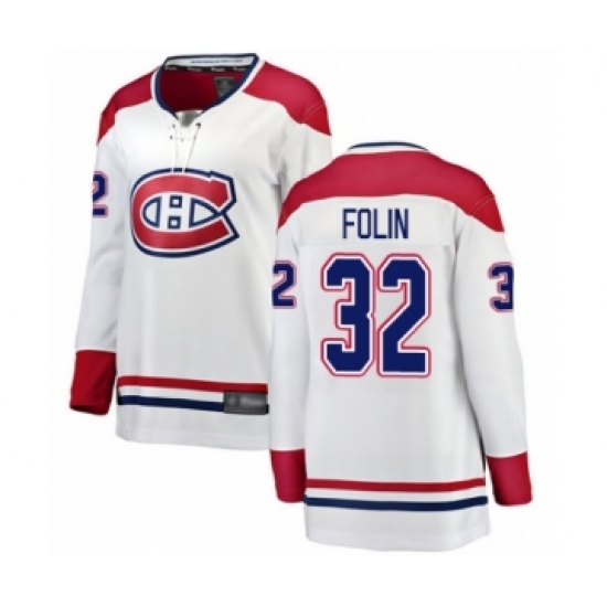 >Women's Montreal Canadiens #32 Christian Folin Authentic White Away Fanatics Branded Breakaway Hockey Jersey