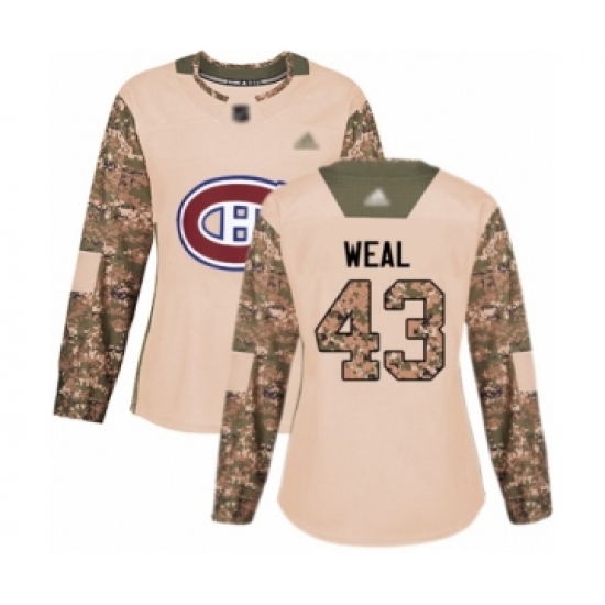 >Women's Montreal Canadiens #43 Jordan Weal Authentic Camo Veterans Day Practice Hockey Jersey
