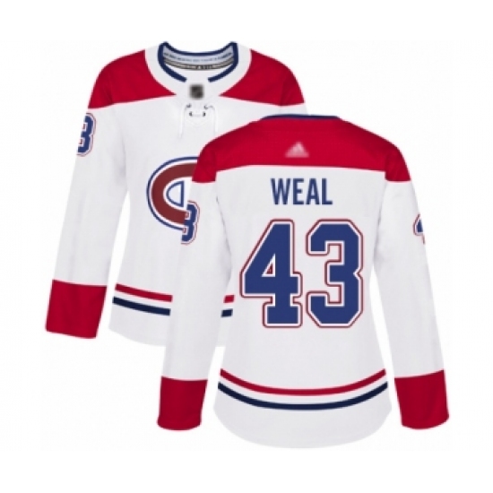 Women's Montreal Canadiens #43 Jordan Weal Authentic White Away Hockey Jersey
