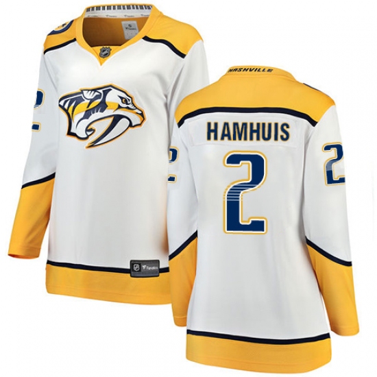 >Women's Nashville Predators #2 Dan Hamhuis Fanatics Branded White Away Breakaway NHL Jersey