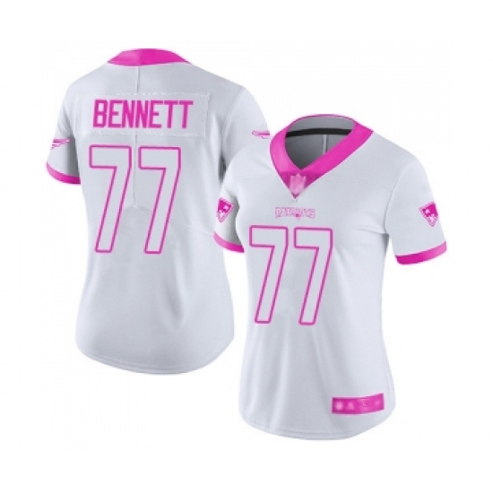 >Women's New England Patriots #77 Michael Bennett Limited White Pink Rush Fashion Football Jersey