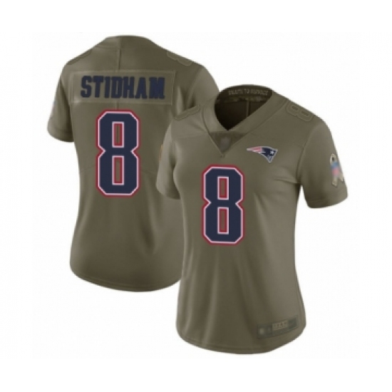 Women's New England Patriots #8 Jarrett Stidham Limited Olive 2017 Salute to Service Football Jersey