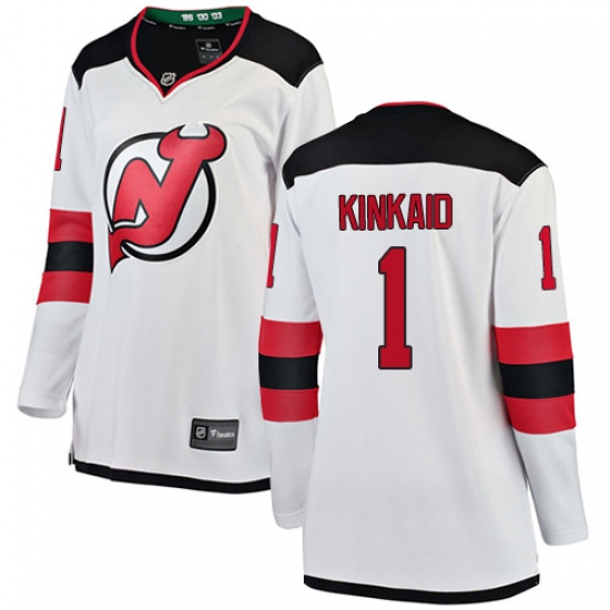 Women's New Jersey Devils #1 Keith Kinkaid Fanatics Branded White Away Breakaway NHL Jersey
