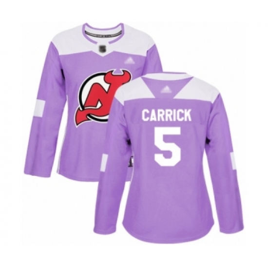 >Women's New Jersey Devils #5 Connor Carrick Authentic Purple Fights Cancer Practice Hockey Jersey
