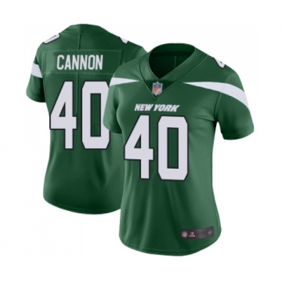 >Women's New York Jets #40 Trenton Cannon Green Team Color Vapor Untouchable Limited Player Football Jersey