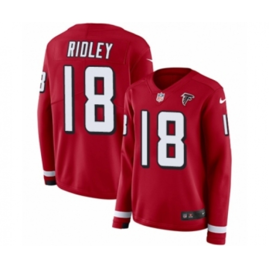 Women's Nike Atlanta Falcons #18 Calvin Ridley Limited Red Therma Long Sleeve NFL Jersey