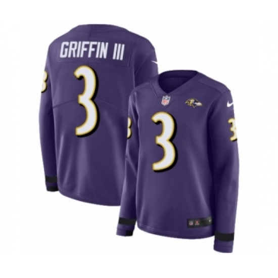Women's Nike Baltimore Ravens #3 Robert Griffin III Limited Purple Therma Long Sleeve NFL Jersey