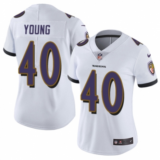 >Women's Nike Baltimore Ravens #40 Kenny Young White Vapor Untouchable Limited Player NFL Jersey