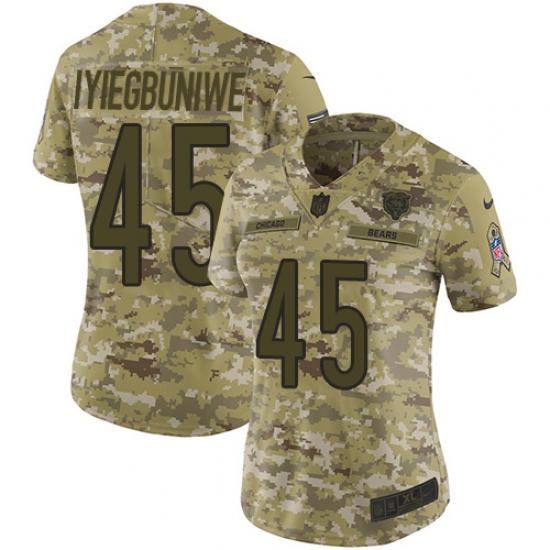 >Women's Nike Chicago Bears #45 Joel Iyiegbuniwe Limited Camo 2018 Salute to Service NFL Jersey