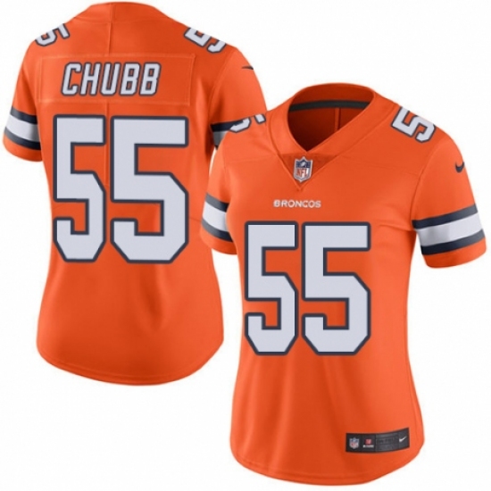 >Women's Nike Denver Broncos #55 Bradley Chubb Limited Orange Rush Vapor Untouchable NFL Jersey
