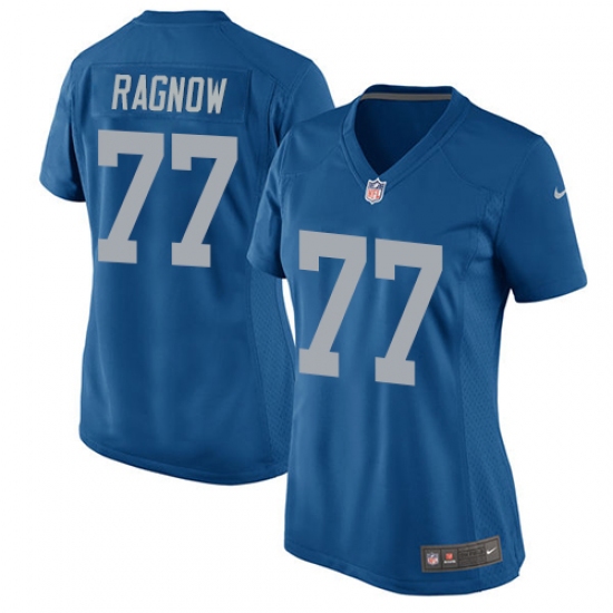 >Women's Nike Detroit Lions #77 Frank Ragnow Game Blue Alternate NFL Jersey