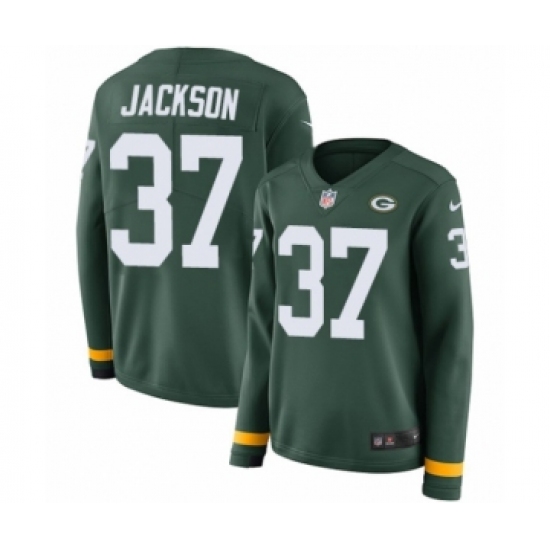 Women's Nike Green Bay Packers #37 Josh Jackson Limited Green Therma Long Sleeve NFL Jersey