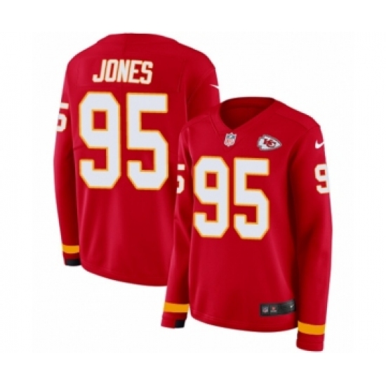 >Women's Nike Kansas City Chiefs #95 Chris Jones Limited Red Therma Long Sleeve NFL Jersey