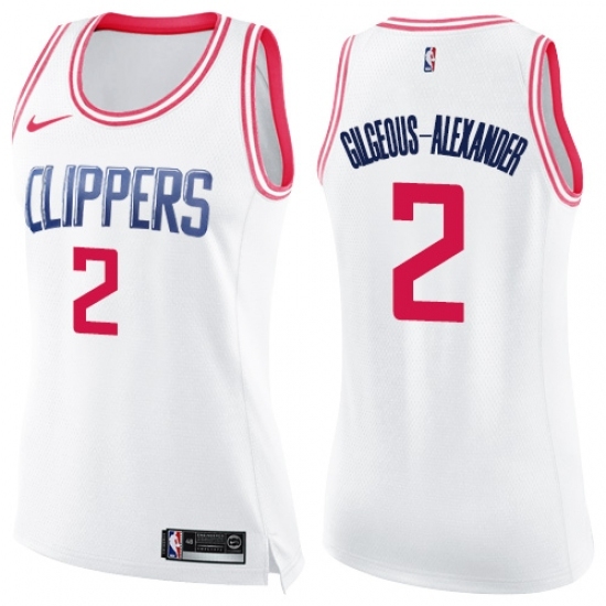 >Women's Nike Los Angeles Clippers #2 Shai Gilgeous-Alexander Swingman White Pink Fashion NBA Jersey