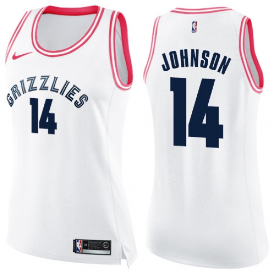 Home>NBA>Memphis Grizzlies>Brice Johnson>Women's Nike Memphis Grizzlies #14 Brice Johnson Swingman White/Pink Fashion NBA Jersey