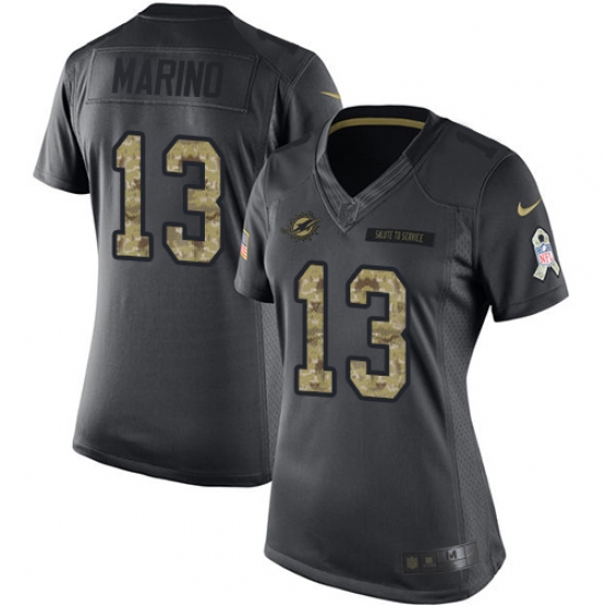 Home>NFL>Miami Dolphins>Dan Marino>Women's Nike Miami Dolphins #13 Dan Marino Limited Black 2016 Salute to Service NFL Jersey