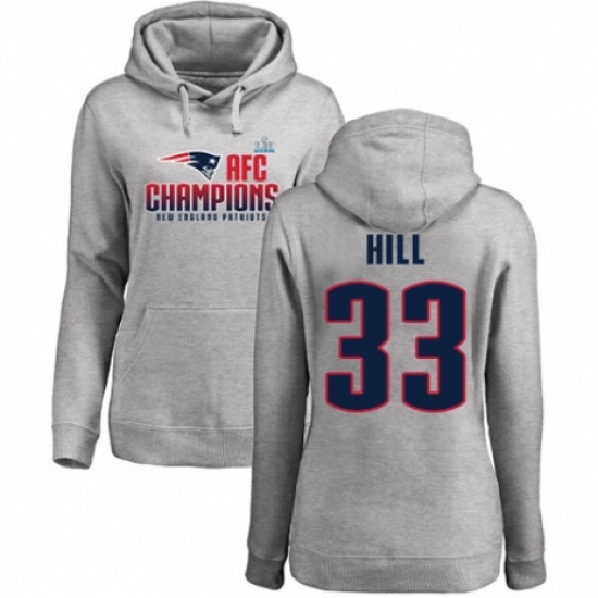 >Women's Nike New England Patriots #33 Jeremy Hill Heather Gray 2017 AFC Champions Pullover Hoodie