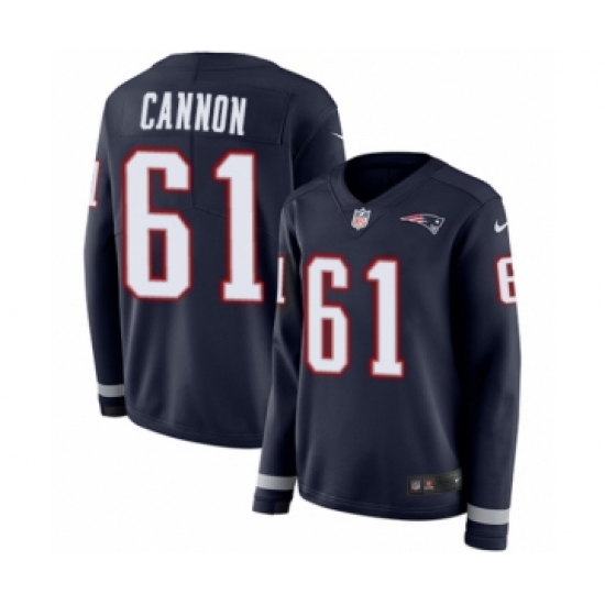 >Women's Nike New England Patriots #61 Marcus Cannon Limited Navy Blue Therma Long Sleeve NFL Jersey