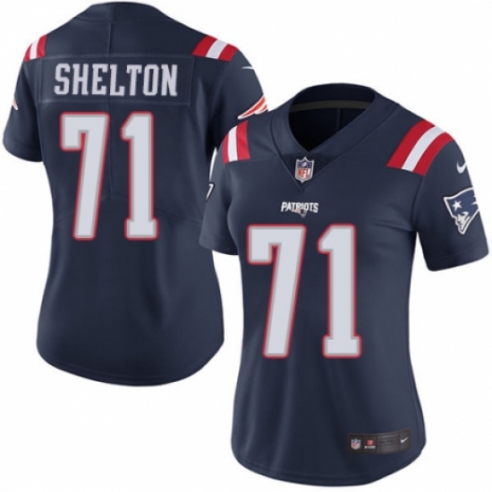 >Women's Nike New England Patriots #71 Danny Shelton Limited Navy Blue Rush Vapor Untouchable NFL Jersey