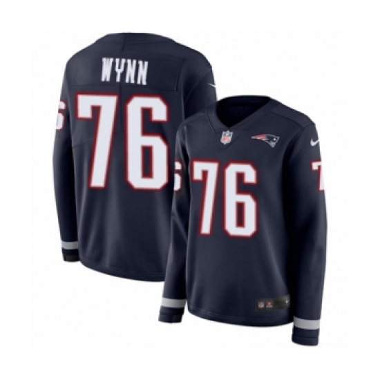 >Women's Nike New England Patriots #76 Isaiah Wynn Limited Navy Blue Therma Long Sleeve NFL Jersey
