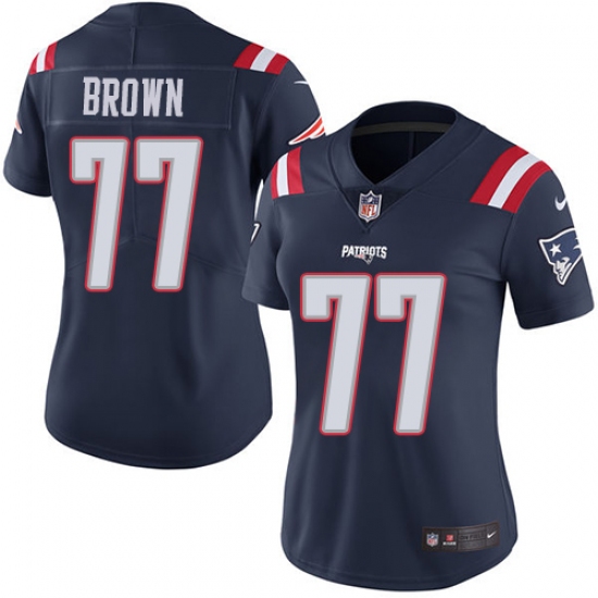 Women's Nike New England Patriots #77 Trent Brown Limited Navy Blue Rush Vapor Untouchable NFL Jersey