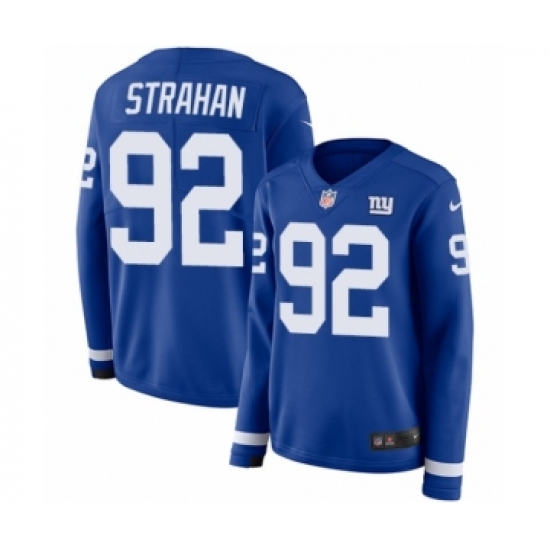 Women's Nike New York Giants #92 Michael Strahan Limited Royal Blue Therma Long Sleeve NFL Jersey