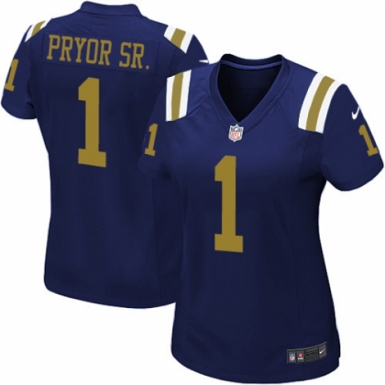 >Women's Nike New York Jets #1 Terrelle Pryor Sr. Limited Navy Blue Alternate NFL Jersey
