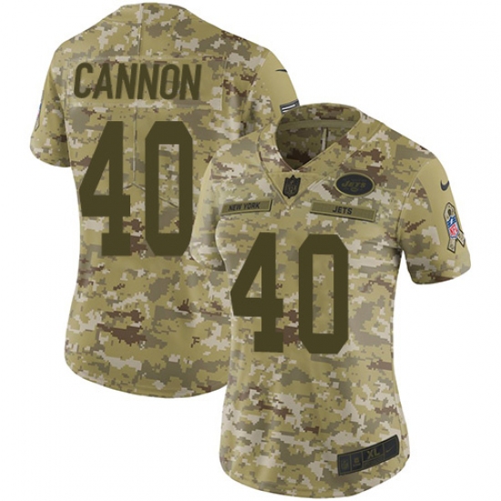 >Women's Nike New York Jets #40 Trenton Cannon Limited Camo 2018 Salute to Service NFL Jersey