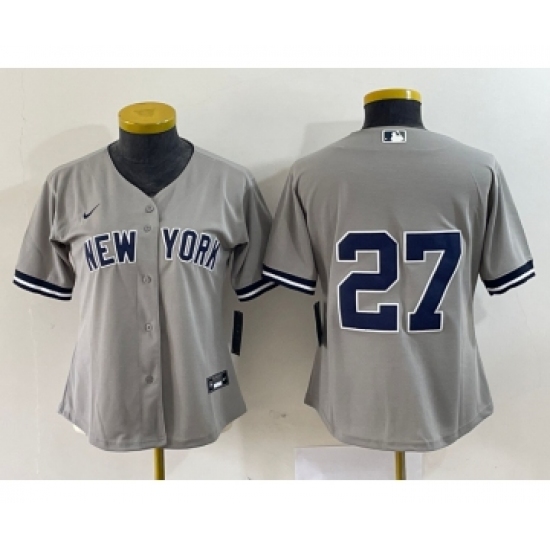 Women's Majestic New York Yankees #27 Giancarlo Stanton Authentic Grey Road MLB Jersey