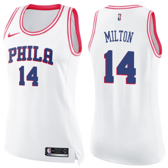Women's Nike Philadelphia 76ers #14 Shake Milton Swingman White Pink Fashion NBA Jersey