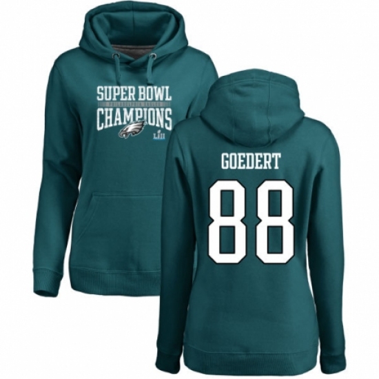 Women's Nike Philadelphia Eagles #88 Dallas Goedert Green Super Bowl LII Champions Pullover Hoodie