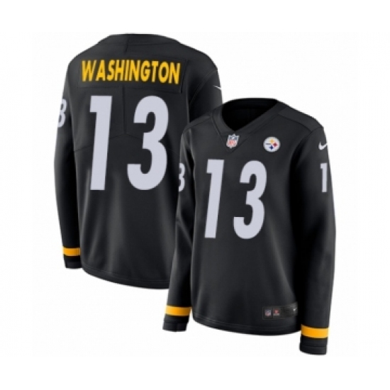 >Women's Nike Pittsburgh Steelers #13 James Washington Limited Black Therma Long Sleeve NFL Jersey