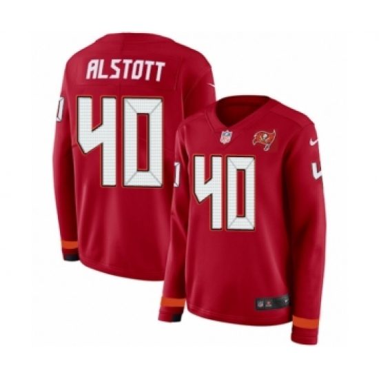 >Women's Nike Tampa Bay Buccaneers #40 Mike Alstott Limited Red Therma Long Sleeve NFL Jersey