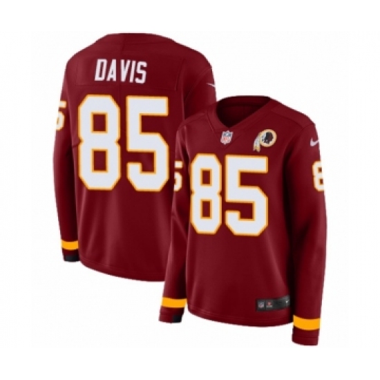 Women's Nike Washington Redskins #85 Vernon Davis Limited Burgundy Therma Long Sleeve NFL Jersey
