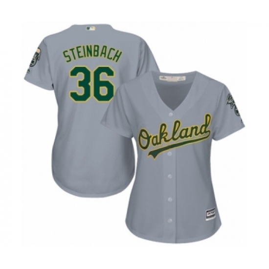 >Women's Oakland Athletics #36 Terry Steinbach Replica Grey Road Cool Base Baseball Jersey