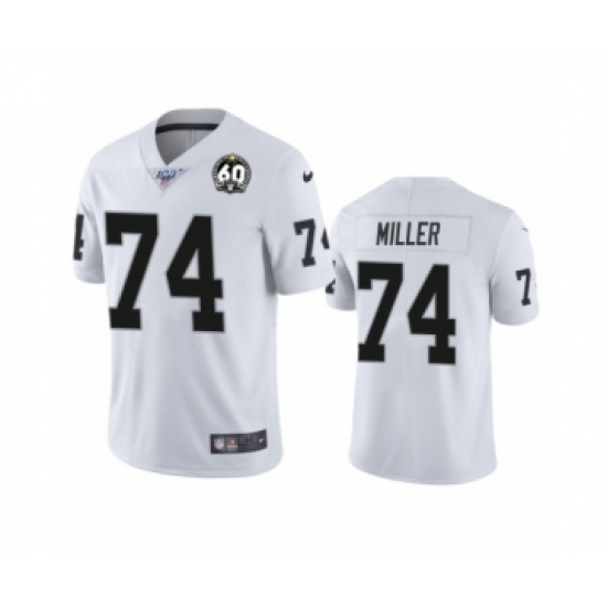 Women's Oakland Raiders #74 Kolton Miller White 60th Anniversary Vapor Untouchable Limited Player 100th Season Football Jersey