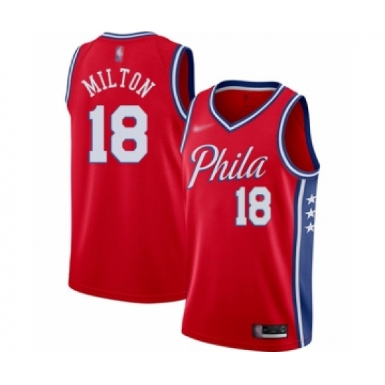 >Women's Philadelphia 76ers #18 Shake Milton Swingman Red Finished Basketball Jersey - Statement Edition