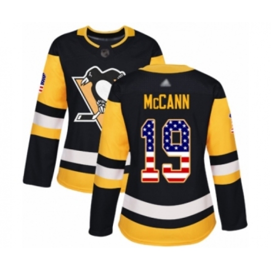>Women's Pittsburgh Penguins #19 Jared McCann Authentic Black USA Flag Fashion Hockey Jersey