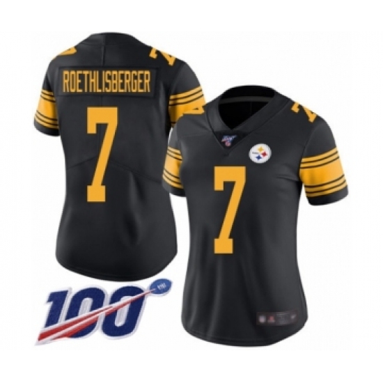 >Women's Pittsburgh Steelers #7 Ben Roethlisberger Limited Black Rush Vapor Untouchable 100th Season Football Jersey