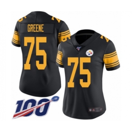 >Women's Pittsburgh Steelers #75 Joe Greene Limited Black Rush Vapor Untouchable 100th Season Football Jersey