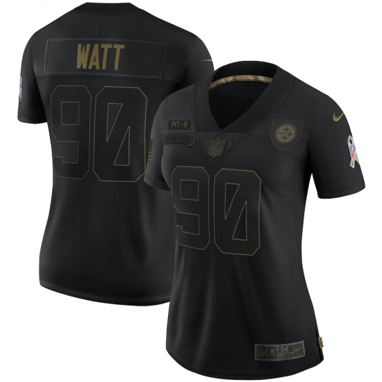 Women's Pittsburgh Steelers #90 T. J. Watt Black Nike 2020 Salute To Service Limited Jersey