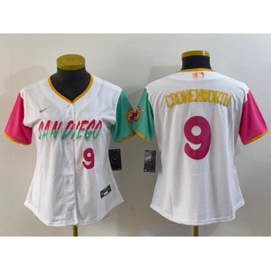 >Women's San Diego Padres #9 Jake Cronenworth White Number 2022 City Connect Cool Base Stitched Jersey