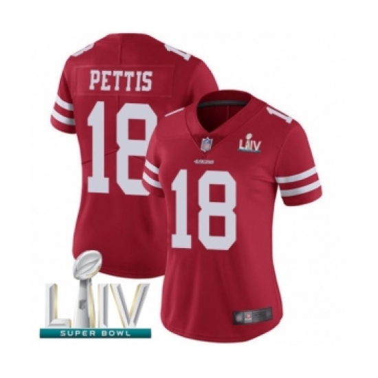 Women's San Francisco 49ers #18 Dante Pettis Red Team Color Vapor Untouchable Limited Player Super Bowl LIV Bound Football Jersey