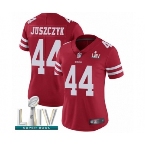 Women's San Francisco 49ers #44 Kyle Juszczyk Red Team Color Vapor Untouchable Limited Player Super Bowl LIV Bound Football Jersey