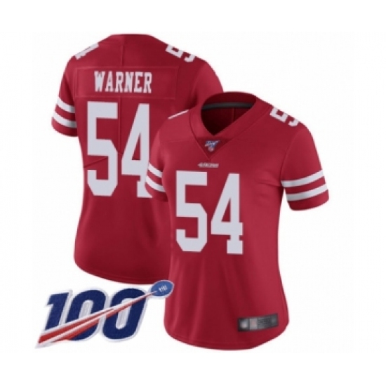 >Women's San Francisco 49ers #54 Fred Warner Red Team Color Vapor Untouchable Limited Player 100th Season Football Jersey